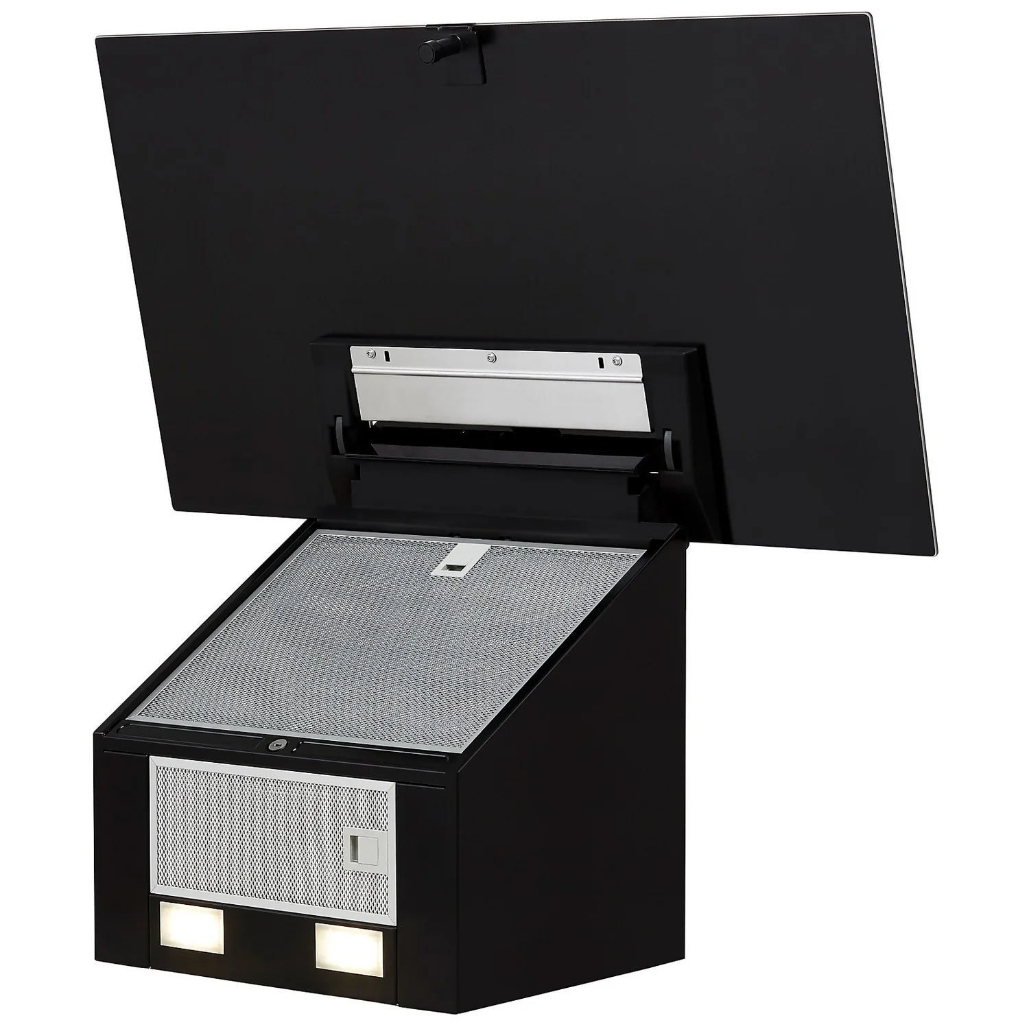 This attractive black angled hood is the perfect finishing touch to your kitchen. It’s not just good looking, it’s hard working too keeping your kitchen fresh and illuminating your hob with its efficient LED lights.