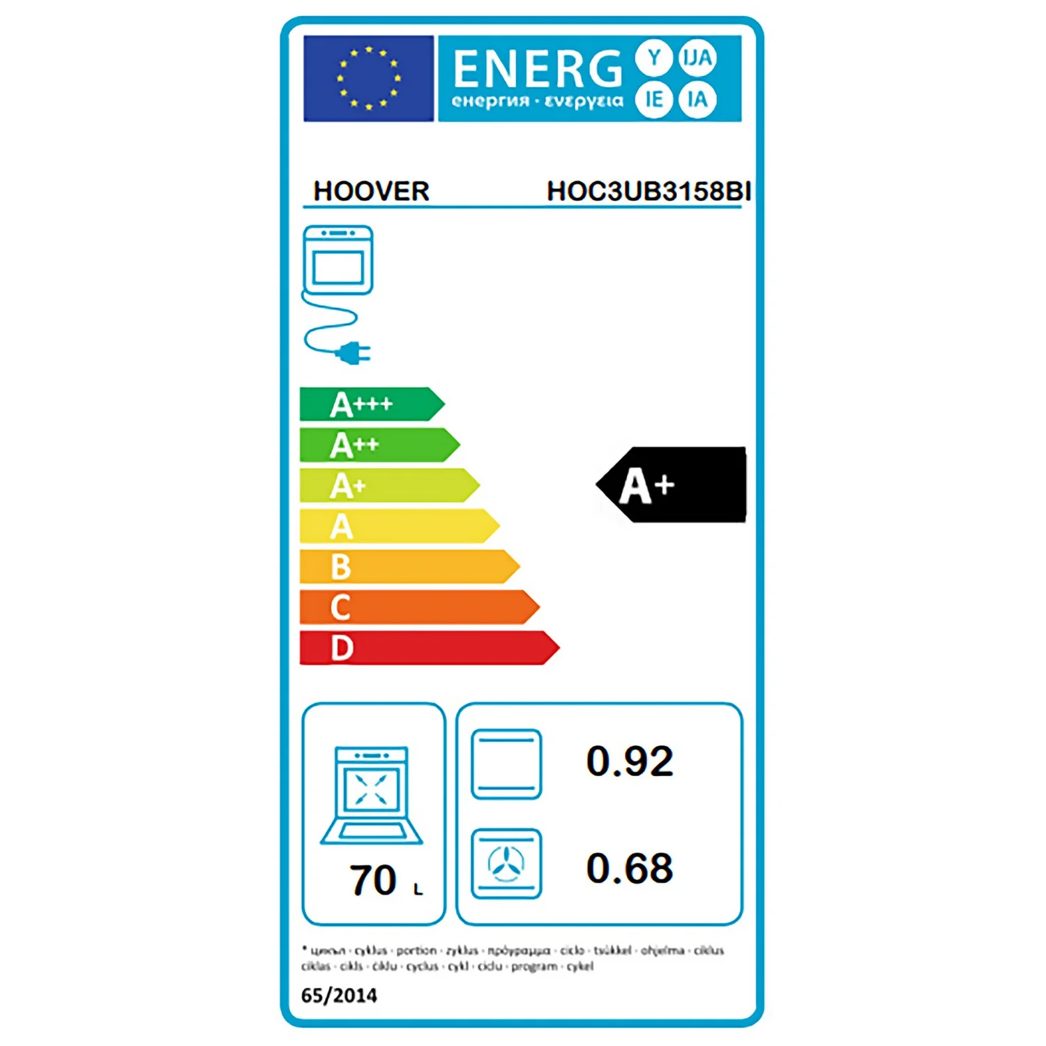 | Energy Class Rating Of Main Oven | A+ |