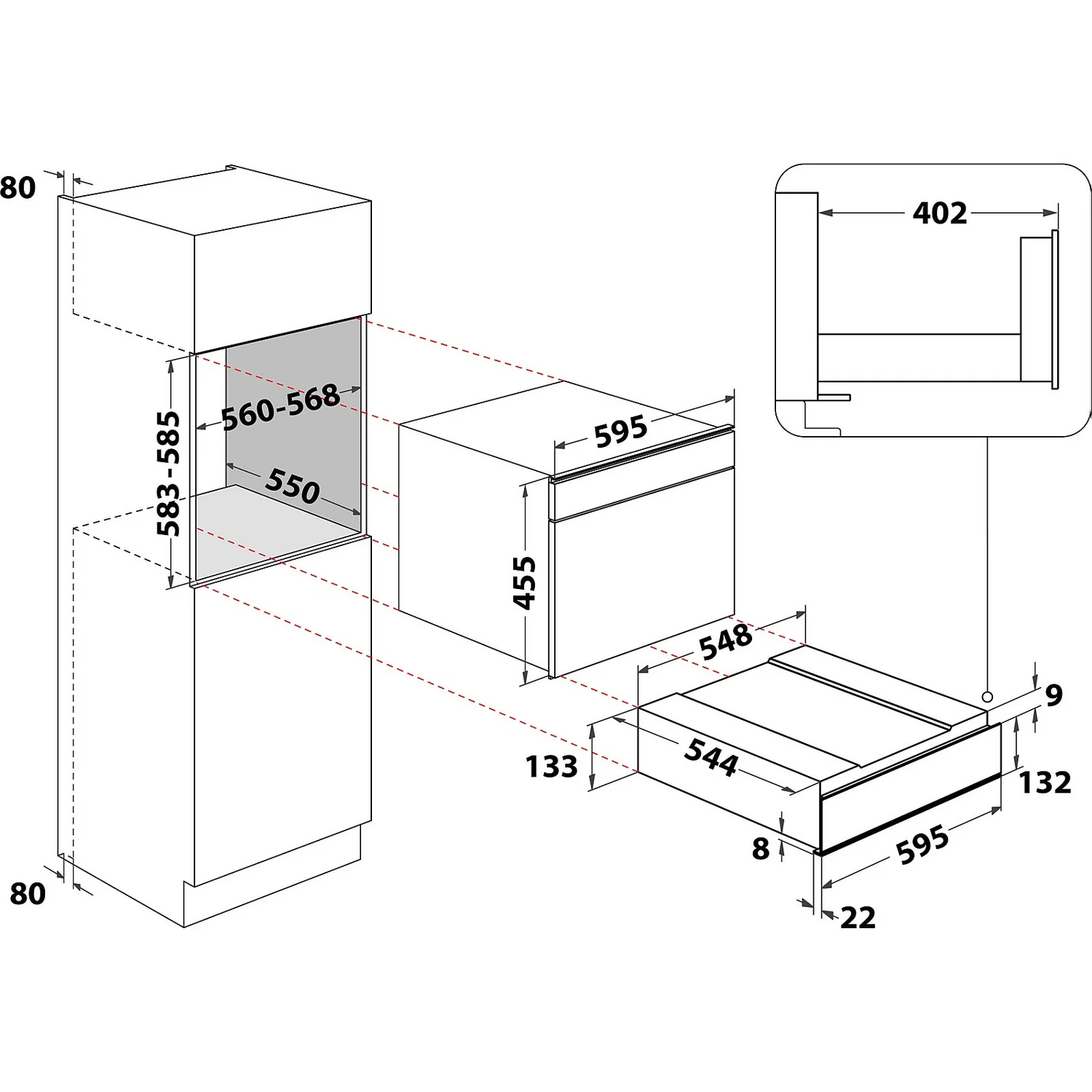 Dimensions 13.4 (H) x 59.5 (W) x 59.8 (D)cm